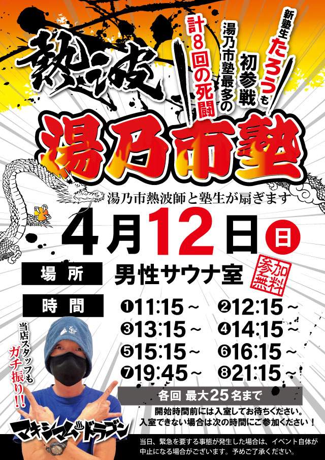 1. 4月12日の熱波情報!!!!!(男性サウナ) …